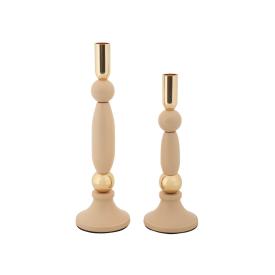 Portacandele in metallo dorato con eleganti decorazioni floreali.