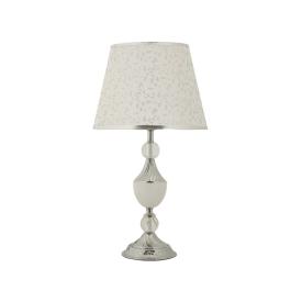 Lampada da tavolo in ceramica bianca e argentata con eleganti linee geometriche in rilievo. completa di paralume in tessuto argent...