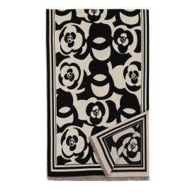 Sciarpa donna in acrilico lana e cashmire bicolor rose bianche e nere Capoverde