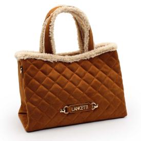 Tessuto in ecopelle logato. logo in metallo con scritta in rilievo.