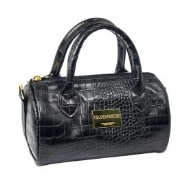 Tessuto in ecopelle logato. logo in metallo con scritta in rilievo.