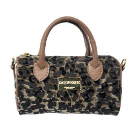 Tessuto in ecopelle logato. logo in metallo con scritta in rilievo.
