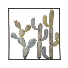 Pannello decorativo 3d da parete in metallo raffigurante un fiore dai colori accesi e delle foglie.