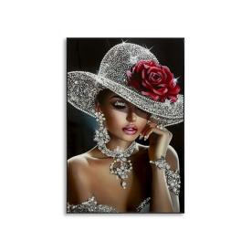 Dipinto su tela laccato con cornice pam incarna eleganza e fascino sofisticato. la figura femminile, con sguardo intenso, cappello...