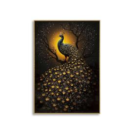 Dipinto su tela completo di telaio in legno e cornice in metallo argento con gufo che indossa occhiali dorati mentre posa con atte...
