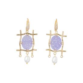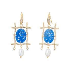 Orecchini a monachella di bronzo con strass e componente di giada burma con perle di fiume 27x60mm bluCod: 79405MNAZ1