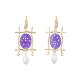 Cod: 79405MNAZ6 Orecchini a monachella di bronzo con strass e componente di giada burma con perle di fiume 27x60mm viola