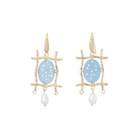 Cod: 79405MNAZ4 Orecchini a monachella di bronzo con strass e componente di giada burma con perle di fiume 27x60mm celeste