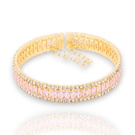Bracciale di bronzo semirigido con cristalli cz rosa
