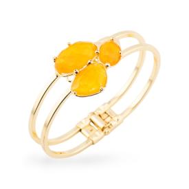 Bracciale di bronzo e centrale di pietre dure incastonate 28x65mm dorato giada giallaCod: 92862NYEAC