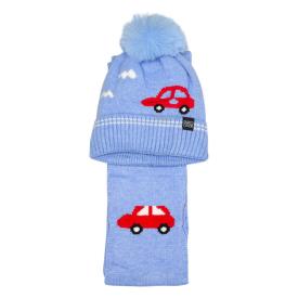Morbido set invernale composto da berretto con pon pon, che presenta un orsetto ricamato, e sciarpa coordinata.