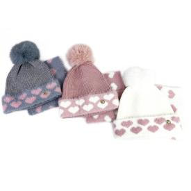 Set bimba cappello e scaldacollo in tessuto leggero con scritta "love" in paillettes.