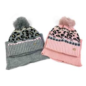 Morbido set invernale composto da berretto con pon pon, che presenta un orsetto ricamato, e sciarpa coordinata.