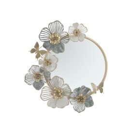 Specchio da parete in metallo ornato da applicazioni argentate che ricordano delicati fiori, aggiunge un tocco di eleganza e raffi...