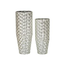 Set di 3 vasi quadrati in metallo argentato con eleganti decorazioni irregolari in rilievo.