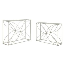 Console in legno bianco con 2 cassetti e ripiano dalla lavorazione semplice e dalle linee essenziali.