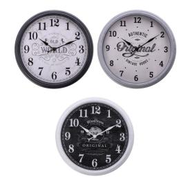 Orologio rotondo da parete in metallo e legno dalle linee semplici e geometriche. funzionamento con batteria aa non inclusa.