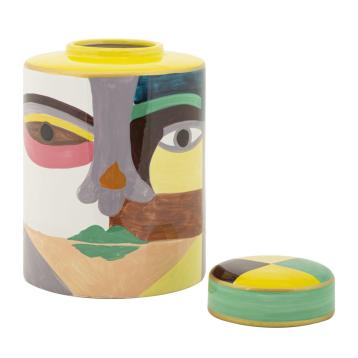 Vaso a forma di volto di donna con una corona di fiori e con una maschera che richiama il carnevale veneziano. le decorazioni dora...
