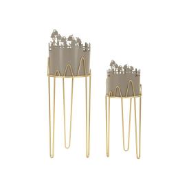 Portavasi rotondo in metallo dalle linee intrecciate che richiamano il rattan e il bamboo. il design semplice si sposa perfettamen...