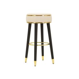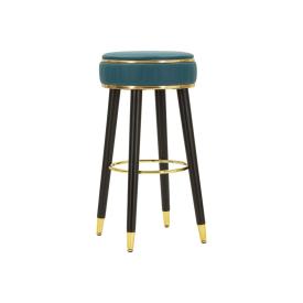 Sgabello bar rotondo imbottito in velluto sintetico con schienale con poggiapiedi in metallo dorato. la forma semplice e le linee ...