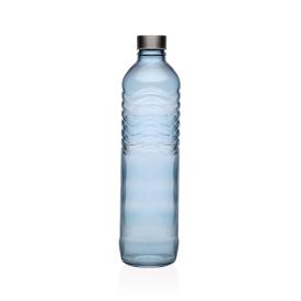Bottiglia trasparente grigia da 1000 ml, realizzata in vetro, ideale per uso culinario e come elemento decorativo.