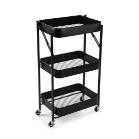 Carrello pieghevole in metallo bianco, ideale per ottimizzare gli spazi in cucina.