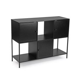 Scaffale a gradini con 4 ripiani, realizzato in legno mdf, metallo e pvc, caratterizzato da un design industriale.