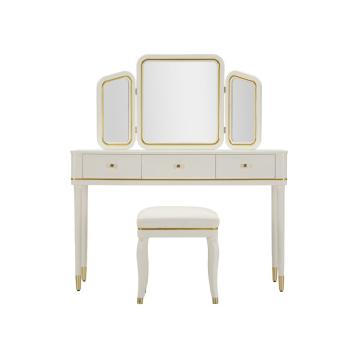Console rettangolare con i lati smussati con cassetto. la struttura in metallo dorato, la parte superiore rivestita in tessuto imb...