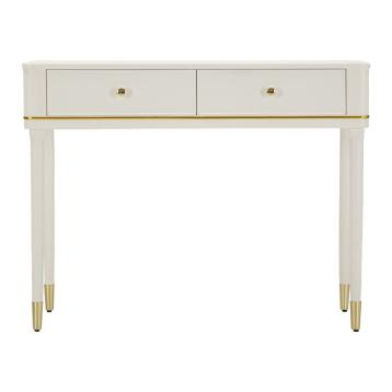 Console ad angolo trapuntata in simil pelle con eleganti gambe dorate e poggiapiedi integrato. pomello a forma di brillante per un...