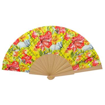 Ventaglio in tessuto e manico di legno, tinta unita.