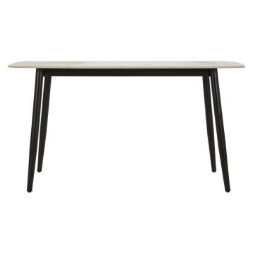 Tavolo da pranzo rettangolare in metallo e legno dalle linee semplici e decise. prodotto da assemblare.
