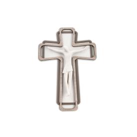 Cristo crocifisso stilizzato bianco su croce legno 16x23 cm Femiano