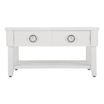 Tavolo da caffè rettangolare con 2 cassetti e ripiano dalla lavorazione semplice e dalle linee essenziali.