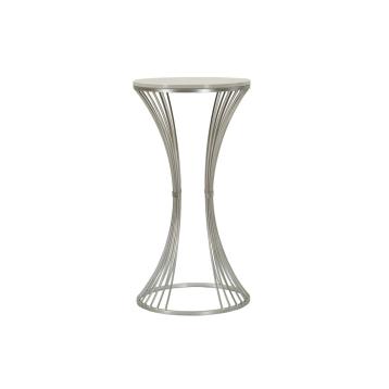 Tavolinetto in metallo argentato con base a linee intrecciate, che si uniscono con eleganza. il top in marmo, con le sue venature ...