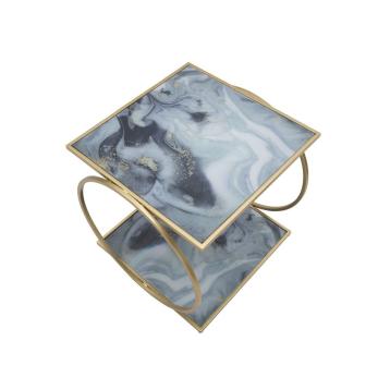 Tavolinetto con base in ferro e top in ceramica marmorea si adatta perfettamente a interni moderni o classici, aggiungendo eleganz...