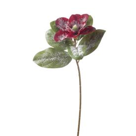 Magnolia innevata per decorazioni natalizie rossa cm72
