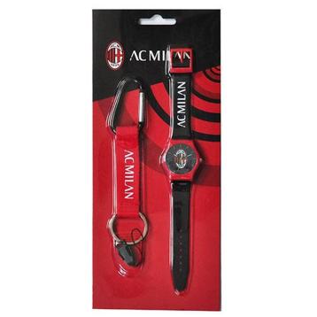 Kit ufficiale ac milan con orologio da polso e portachiavi in tessuto con moschettone.