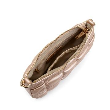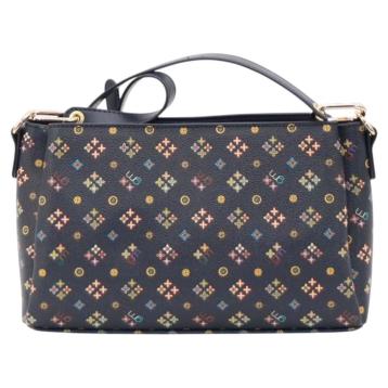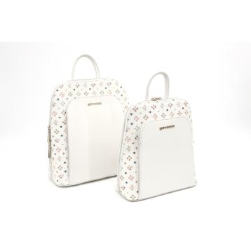 Tessuto in ecopelle logato. logo in metallo con scritta in rilievo.tracolla asportabile in dotazione.dimensioni prodotto: 26x15x20 cm